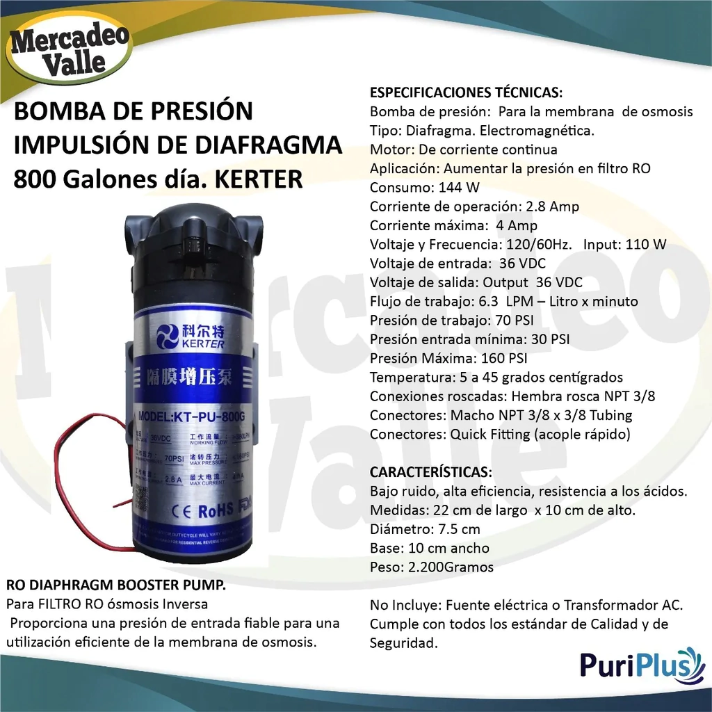 BOMBA KERTER DE PRESIÓN IMPULSIÓN DE DIAFRAGMA 800 Galones día +