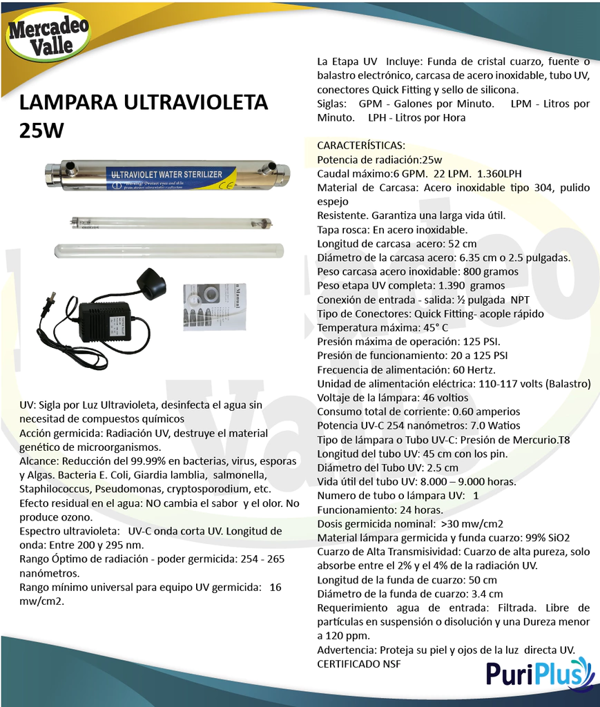 5. Ultravioleta 25w -UV (Elimina Virus- Bacterias)