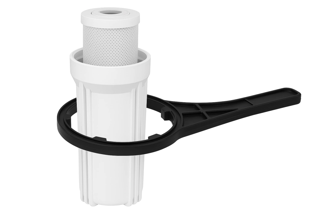 Esta práctica llave para carcasa de 10 pulgadas te permite abrir y ajustar tu filtro de manera rápida y segura, evitando daños en la rosca o fugas de agua.